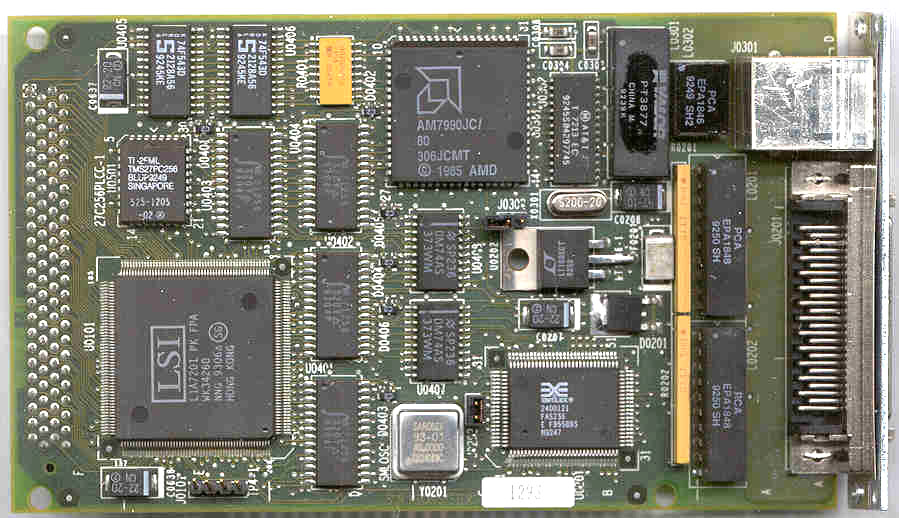Sun SPARC FSBE/S Sbus fast SCSI/ethernet controller. SCSI-2 Interface and RJ45 TP connection. See also, X1053A.