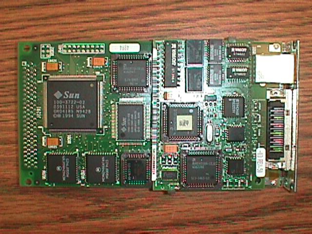 Sun 10/100 baseT Ethernet Sbus card. This card is supported in most pre-Ultra Suns, and works with Solaris releases up to (and including) 2.6. Very early releases of Solaris aren't supported. See also, 501-2655.